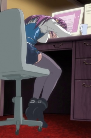 Aki is a friendly and innocent young lady, still a virgin prior to the events of the series. She is somewhat absentminded, however, and often forgets to do certain tasks at work and regularly falls asleep while conducting her research. She is quick to apologize when she is called out on her behavior, and usually manages to get the task done in time after all.