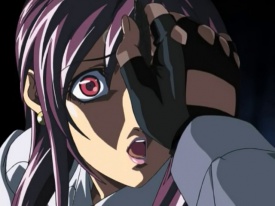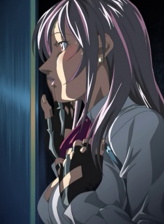 When Aki regains consciousness sometime later she finds herself shackled half-naked to the stone altar in the basement, surrounded by the ritual girls, Imari and her loyal follower Kaori Saeki. Aki realizes Imari is really the evil Reika Kitami. The woman inserts the Spear of Longinus tip into her body, causing Aki to scream and contort in pain. A barrier suddenly forms around her body, apparently erected from outside the building by the kind-hearted nun Hiroko Takashiro.
